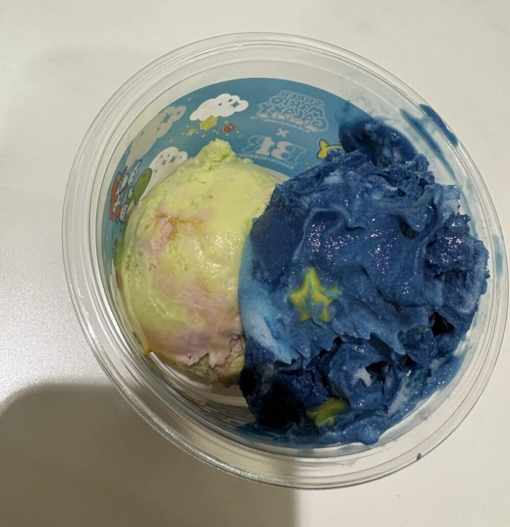 サーティワンは季節限定やコラボ商品が出るたびにわくわくしますが、今回のマリオコラボも見た目がとても可愛くて、食べる前から楽しみにしていました✨