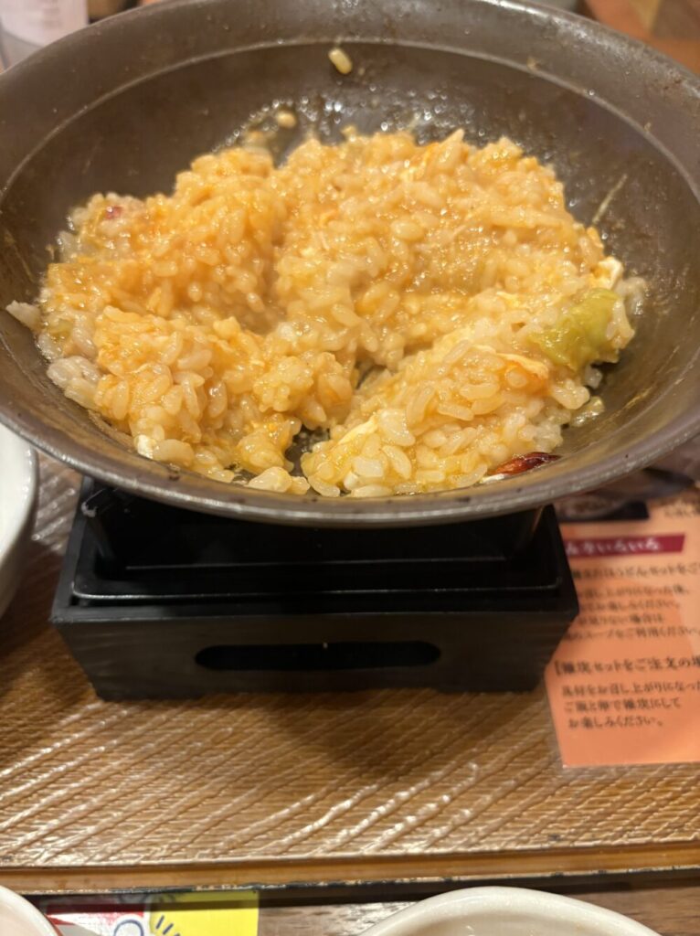 シメの雑炊は、スープが少なかったのかどちらかというと「スープ雑炊」というより卵かけご飯をお鍋で温めたような、しっかりご飯メインの仕上がりに。笑