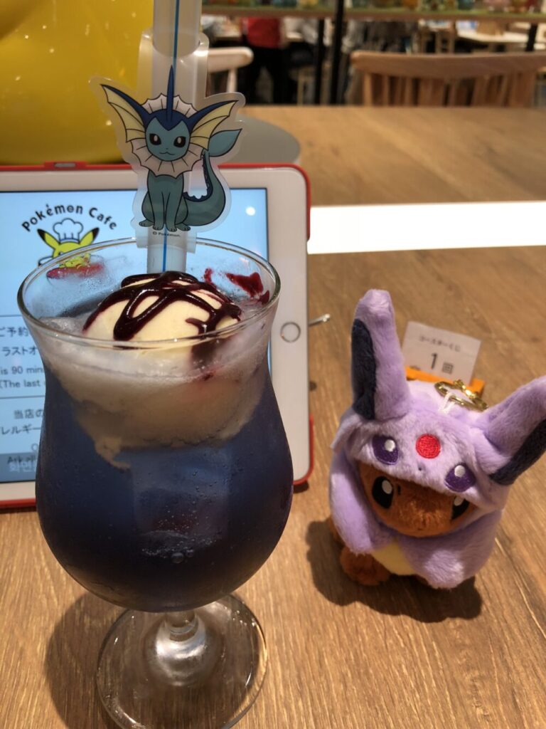 2回目にポケモンカフェへ行った日は、まず大好きなブイズメニューから「シャワーズのフロートドリンク」を注文しました。