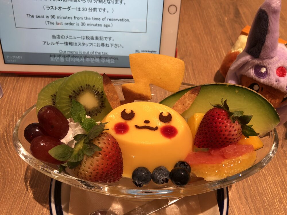 デザートには「ピカチュウのプリンアラモード」を注文しました🍮