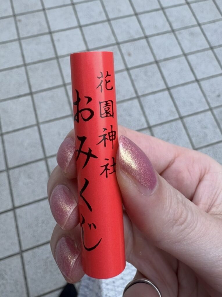 花園神社のおみくじは、くるっと巻かれた巻物のようなかたちをしていて、とても可愛いんです♡