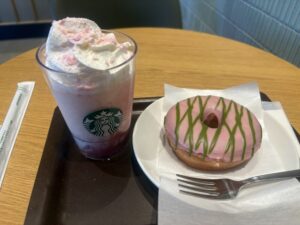 今回は 桜咲くよ 白桃フラペチーノ に加えて、桜抹茶ドーナツ も一緒に頼んできたので、感想をゆるっとレポートしていきます🍑🍩