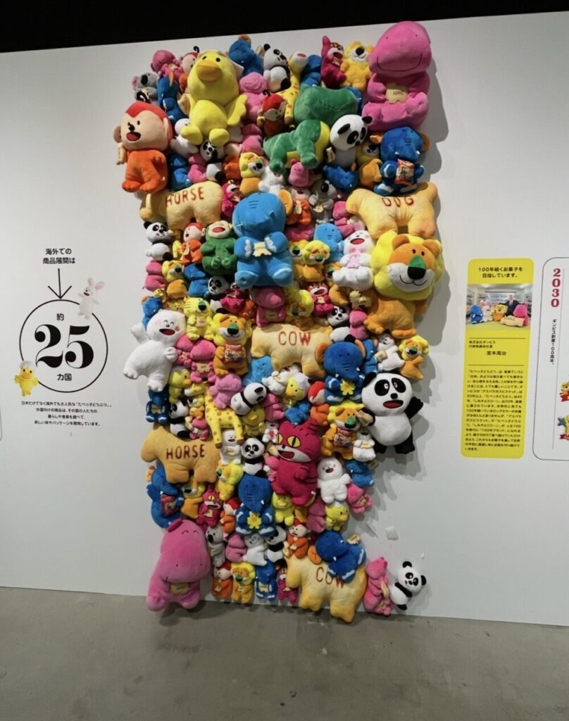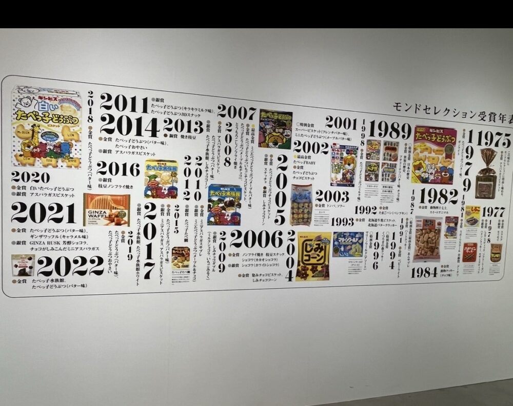 たべっ子どうぶつの歴史がずらっと並んだ年表など、